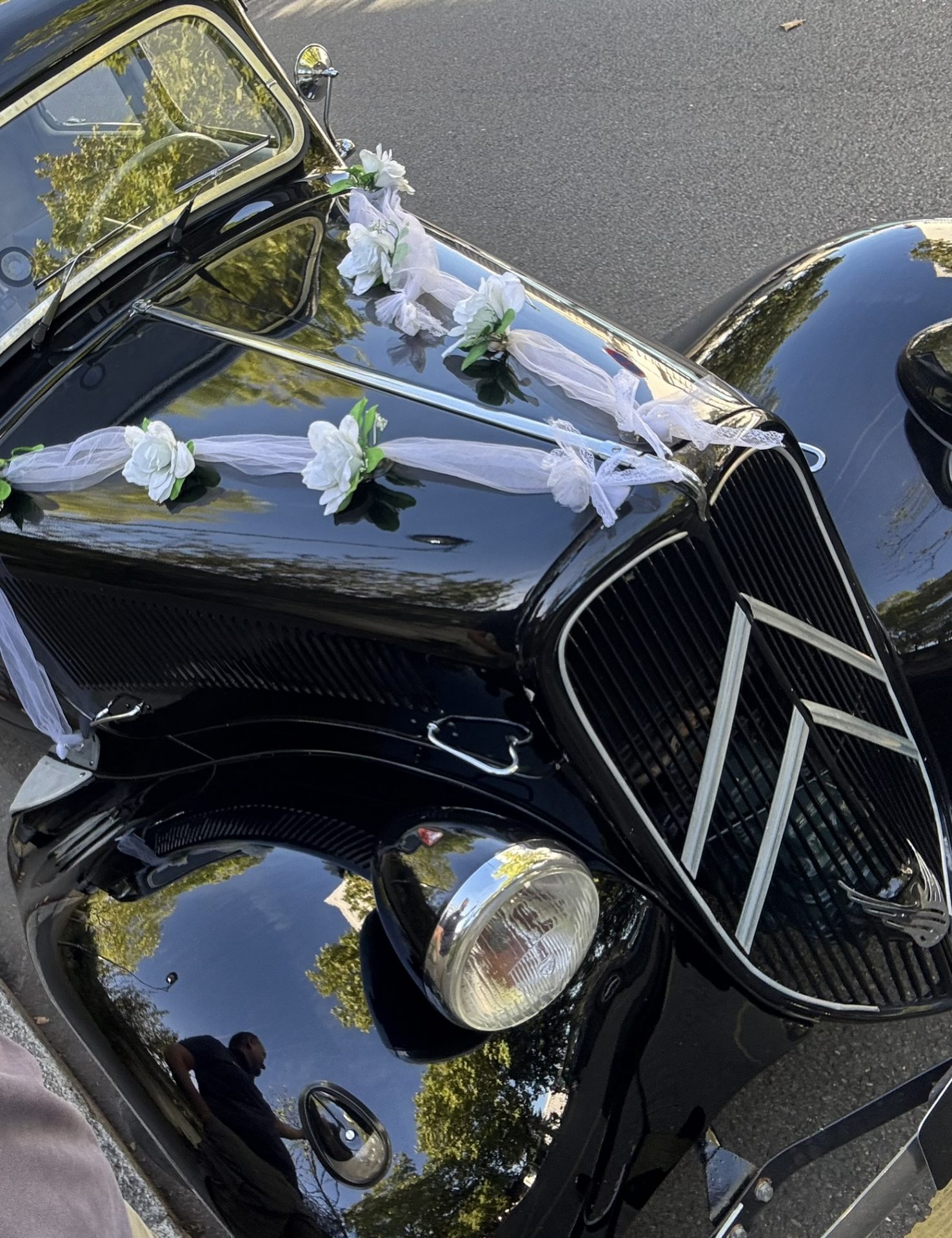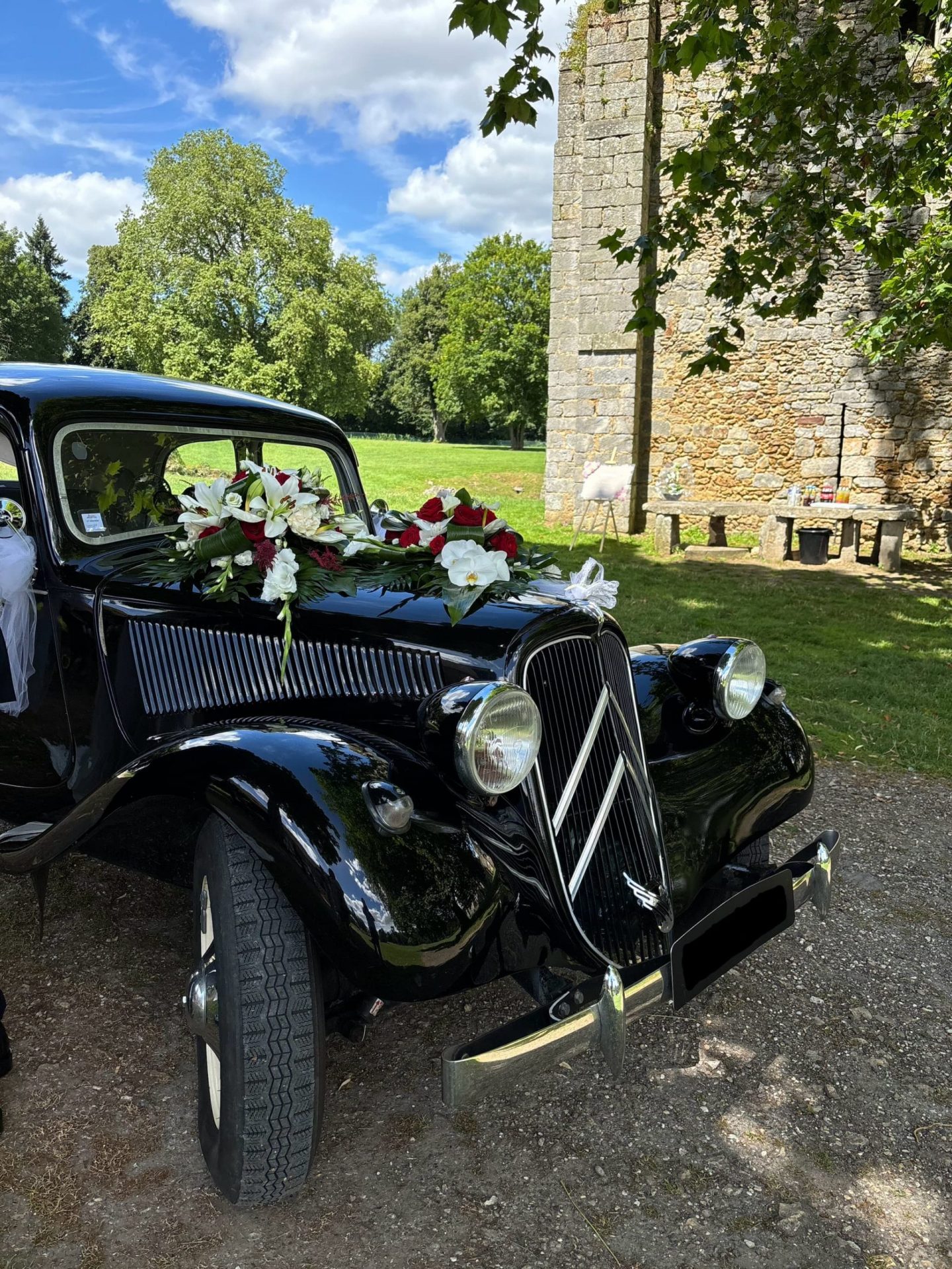 La première chose qui attire le regard est la couleur de la voiture. Le noir est la couleur la plus élégante et intemporelle pour un mariage. Il symbolise le prestige, la sobriété et le raffinement. Une Citroën Traction noire s’intègre parfaitement à tous les styles de mariage, qu’ils soient classiques, modernes ou vintage. Elle garantit une arrivée remarquée et élégante.